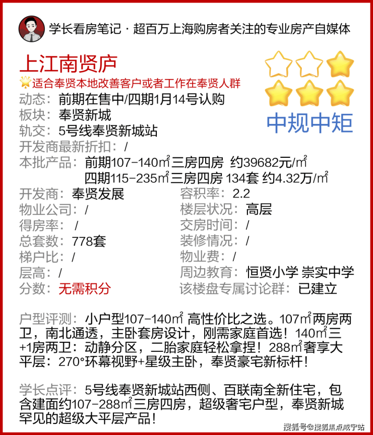 一房一价表发布!奉贤新城「上江南贤庐」四期1月14号认购!推出建面约115-235㎡三房四房,约4.32万/㎡!