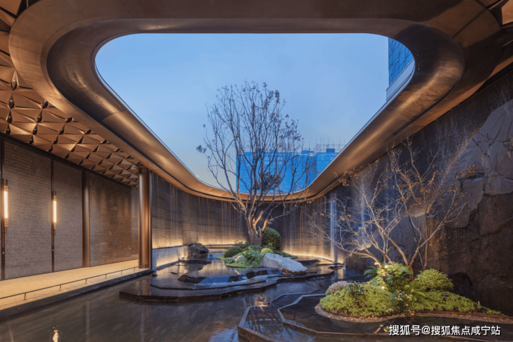在这里,长约23米的恒温泳池一眼望尽,没有一根立柱遮挡视线,玻璃幕墙与下沉庭院相映成趣,生活的质感油然而生;