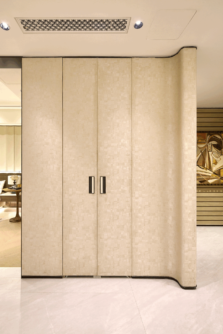 在保利天奕的背景墙岩板定制之上,保利珺园实现定制化的全面升级,打破“千房一面”的桎梏,构建三大定制体系,将定制化贯穿入户、玄关、客厅空间,兼顾个性化需求与整体美学统一,彰显高阶人群的专属品味