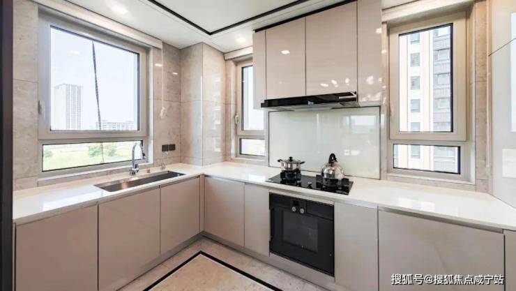 此外,更多细节也值得考究,比如厨房灶台之后的墙壁,用的是整块玻璃,避免墙砖接缝里渗入油渍,配置整块玻璃,不仅仅是从美观角度来考量,更考虑到了功能性。