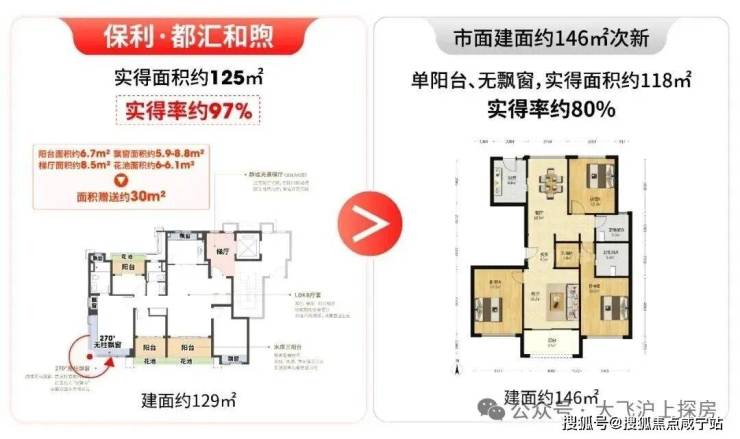洋房标准层边套赠送面积约30㎡,实得率高达97%,相当于直接赠送约200多万价值,常规项目80%的实得率与之相比差距明显,该户型实际可享受常规155-160㎡的空间尺度。