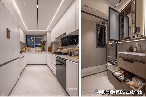 设计深度贴合日常需求,让精装不止于“豪”更在于“舒”。厨房采用人体工学高低台布局,烹饪区低于水槽区,契合手臂自然下垂的舒适角度,让烹饪动作行云流水,大幅减轻家务疲劳。更精准捕捉女性需求,卫生间专门配备科勒美妆龙头、美妆镜柜、美妆冰箱,搭配“顶+面双补光照明”,将“女本位”关怀落到细节,这般细致在同类项目中实属难得。