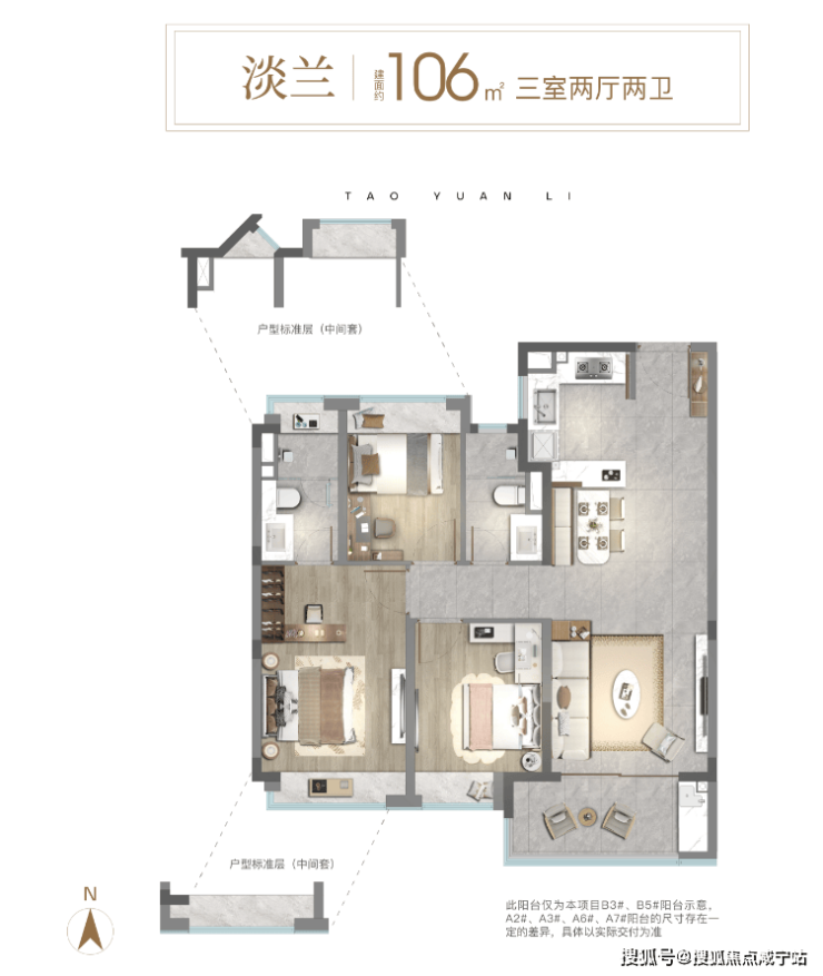 ✔建面约106㎡做到了真三房,客厅面宽达到约3.45米,开放式可视厨房设计,搭配南向大面积阳台,打造开阔的一体化家庭公共活动空间,整体居住体验明亮开阔。