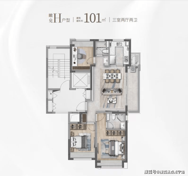 建面约101㎡的F和G户型都是市面上备受认可的飞机经典款户型。