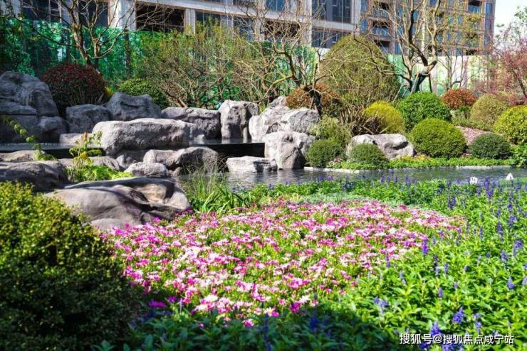 溪山叠翠作为穿过门厅大堂的第一重园林,以约287㎡灵动水景与假山结合而成,层层递进让空间更富层次,形成“山石+水景+绿植”环抱式的自然流水之境,将归家的舒适感与松弛感瞬间填满整个身心,疲惫与烦杂烟消云散,一切都是如此的美好与惬意。