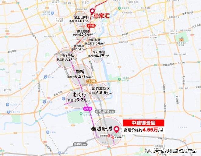 不论是5号线,还是15号线,沿线新房价格已然不低了,闵行区更是普遍在6万+/㎡。