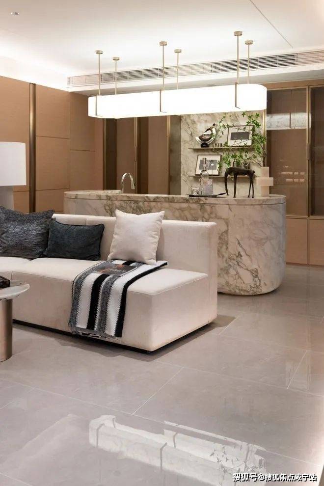 首层拥有超大开间以及宽绰客厅,阳光铺陈,清风徐来,随时感受生活与自然的和鸣,同时也是气场不凡的社交空间。