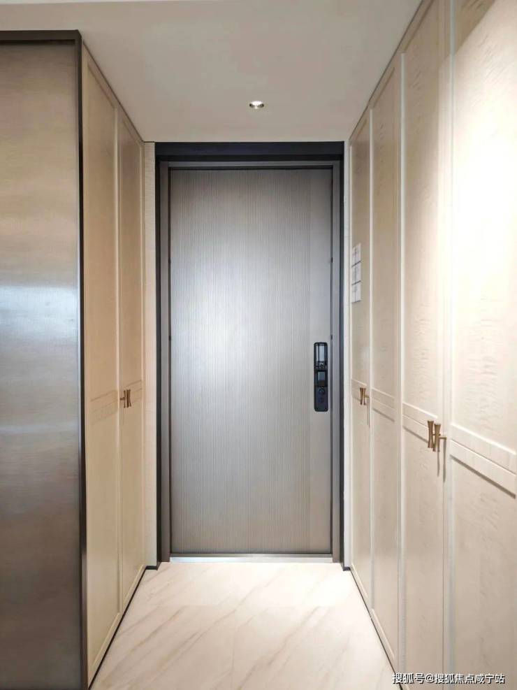 建面约120㎡户型的过道的木饰面以及玄关储物柜门均是由影木打造。