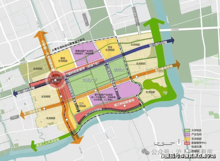 正处上海南部科创中心“一廊一轴”横纵交汇中芯点和4大科创区围合中芯点。