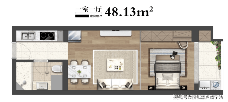 项目主打两类产品:平层48㎡一房与复式49-85㎡两至三房,均为精装交付(装修标准3800元/㎡)。