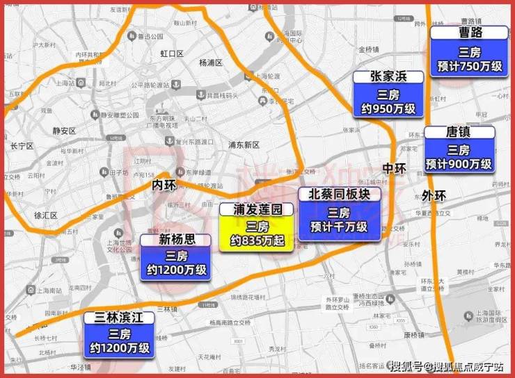 整个浦东内中环,新盘三房的价格,新杨思板块已经锁定1200万级,浦发莲园与新杨思板块的直线距离,不足5km!