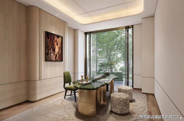 无界屏玻璃中央会客厅,270度视野无敌!未来业主可以这里品茶、会客、休闲、健身,兼顾社交场景与美学享受,满足全龄业主的品质生活所需。