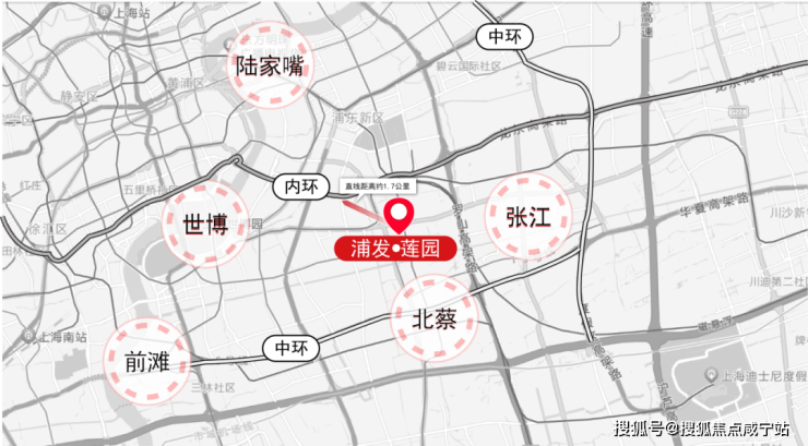 3.好选择!项目择址浦东内环旁北蔡板块,直线距离内环仅1.7km,三轨纵横,配套资源浓度高,成熟居住社区,加上浦发莲园实景现已落地,所见即所得的确定性,才是真正的安全垫!