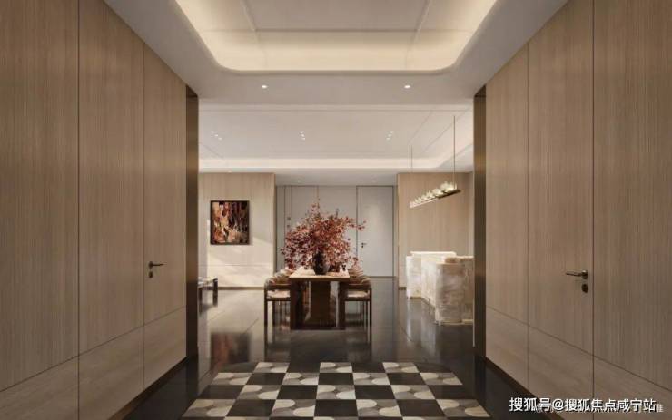 类一梯一户设计,电梯厅空间完全可以作为独立前室使用,将玄关收纳、次净衣区外置来释放室内空间。