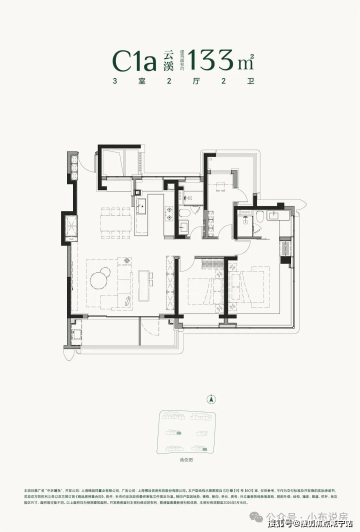 建面约133㎡的三房两厅两卫