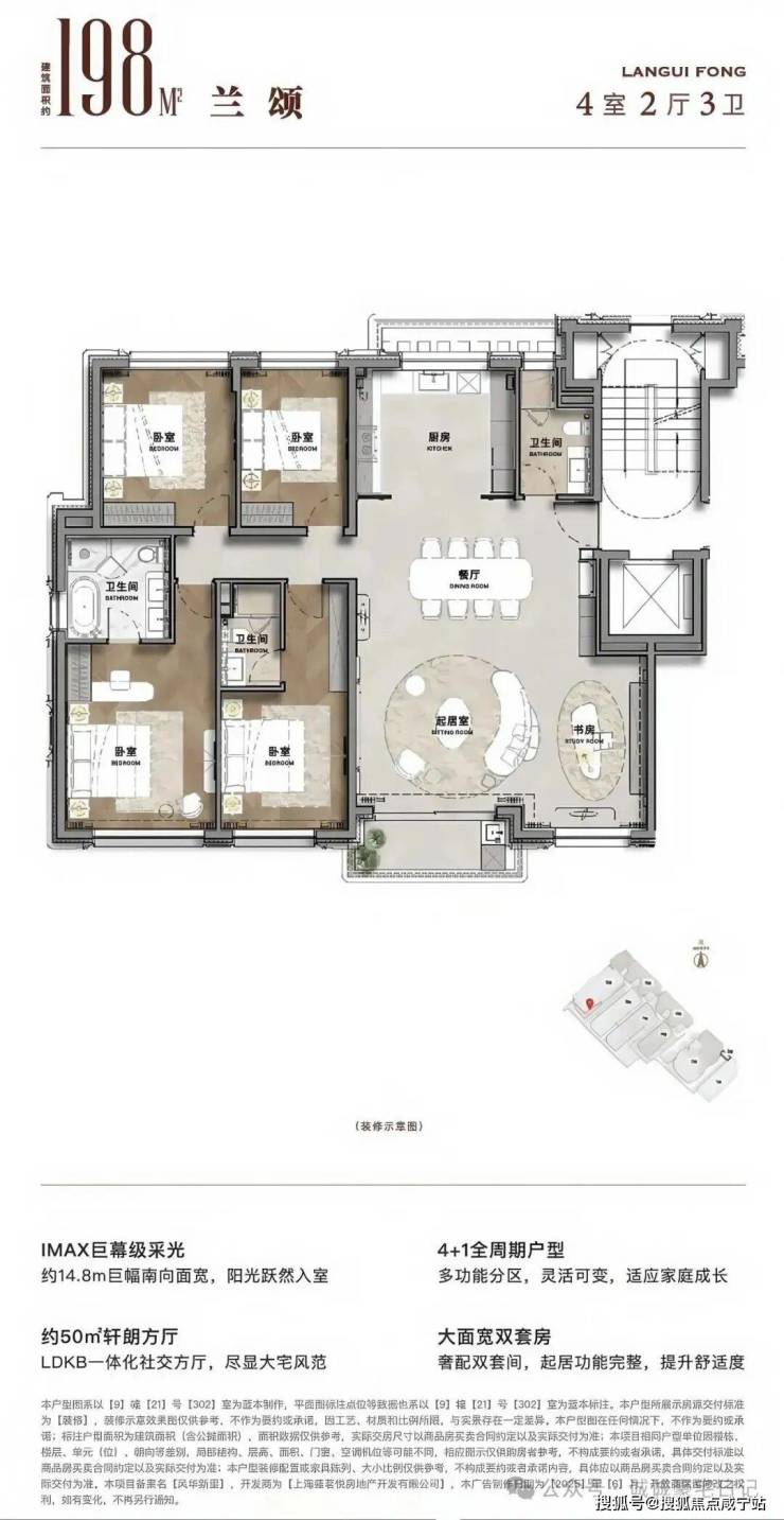 4+1全周期成长性户型,使家庭成员既可以共享社交空间,又拥有充足的私密领域,满足现代家庭多样化以及多代同堂生活需求。