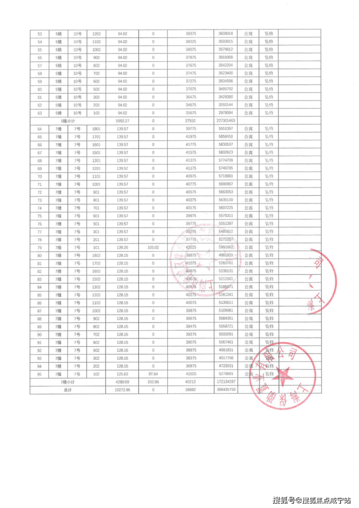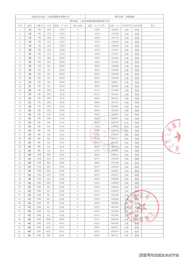 一房一价表:
