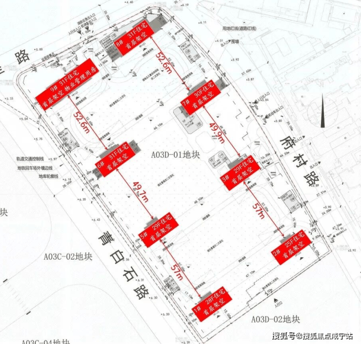 当大多数社区还在为30米的楼间距努力时,中海环宇玖章已经实现了质的飞跃——大部分楼间距达到约50米,最小处也有49.7米,最大处更宽达57米。