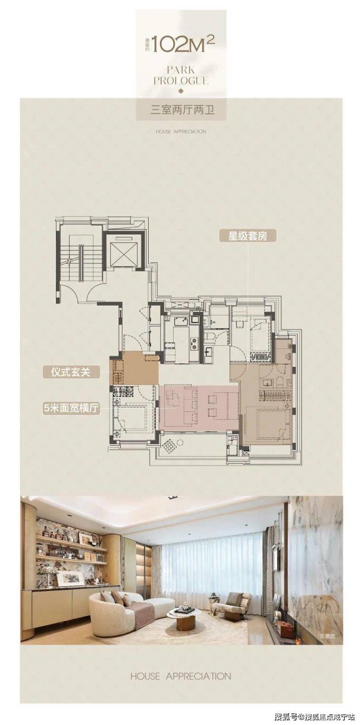 建面约102㎡户型,三房两厅两卫格局,同样的设计巧思打造出近乎双套房的生活体验。横厅设计,营造极致通透感,臻选奢石融入空间,层次灵动,优雅时尚。朗阔厨房,科学动线设计,搭配国际品牌五金和厨电,悦享精致烹饪时刻。主卧大飘窗,将空间最大程度延伸,打造舒居体验。