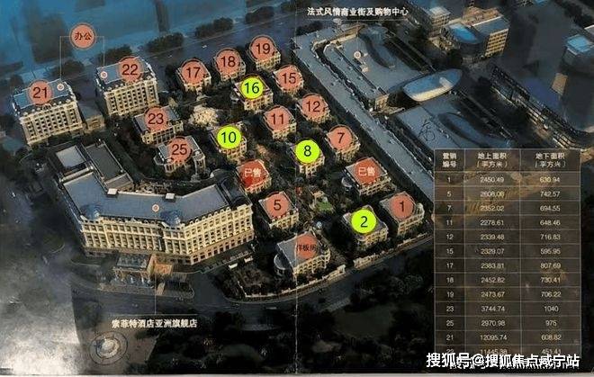项目占地面积约90867.2平方米,规划总建筑面积约29万平方米,其中地上建筑面积约14万平方米,地下建筑面积约15万平方米。整个项目规划有3.5万平方米超五星索菲特酒店、2700平方米国际会议中心、18栋独栋商墅总建筑面积约4.8万平方米、约1.4万平方米风情商业街和约2.3万平方米大型购物中心。