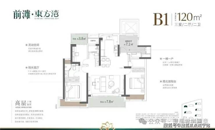 这3个户型三开间朝南、室内“朝南2飘窗+1阳台”、再加上“2卫”、“动静分离”的设计,不管是采光、视野、通风、私密性,还是实用性都十分出色。