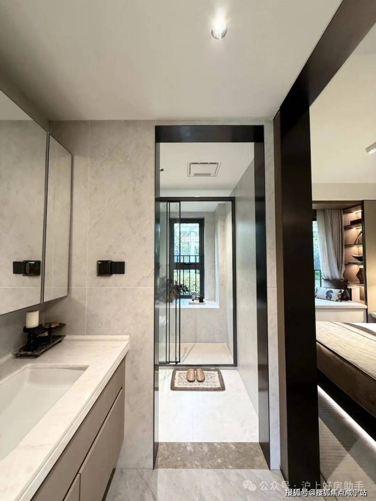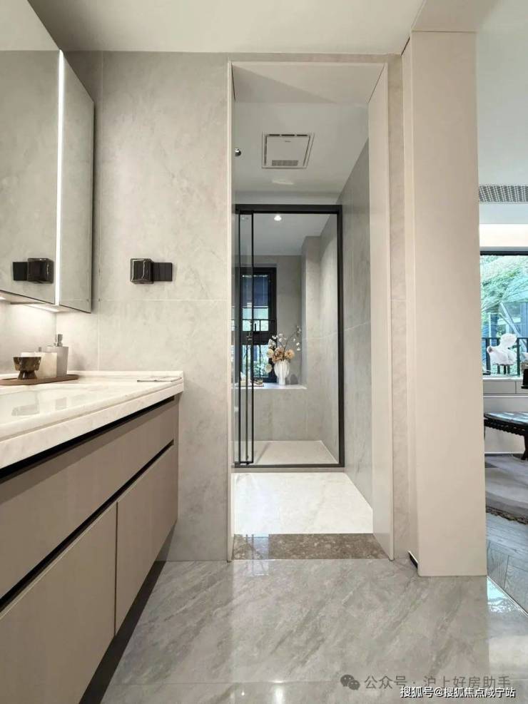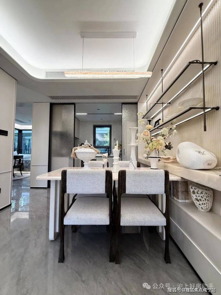 归家门厅设计为弧形顶棚,非对称构图,圆润的形式提供给业主放松的情绪价值。可以说是处处体现人居的松弛感和舒适度。